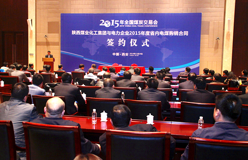 11月29日,在全國煤炭交易會上,舉行了陜西煤業(yè)化工集團與省內(nèi)發(fā)電企業(yè)2015年度電煤購銷合同簽約儀式。運銷集團公司與陜西省關中地區(qū)十四家主力發(fā)電企業(yè)正式簽訂了2015年度煤炭購銷合同,共簽訂合同量1980萬噸,約占省內(nèi)發(fā)電企業(yè)全年需求量的50%。