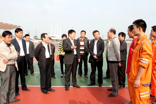 陜煤化集團(tuán)總經(jīng)理嚴(yán)廣勞一行實地察看綜合訓(xùn)練館