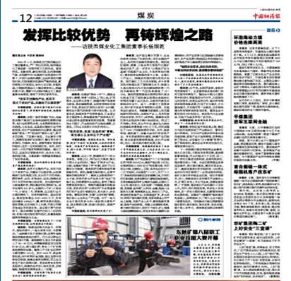楊照乾:對于完成集團(tuán)“十二五”規(guī)劃確定的“投資2000億元,煤炭產(chǎn)能達(dá)到2億噸,實(shí)現(xiàn)銷售收入2000億元”的發(fā)展目標(biāo),我們堅定不移,充滿信心。目前,各單位在發(fā)力“十二五”的同時,正在謀劃“十三五”。關(guān)于“十三五”具體的經(jīng)濟(jì)指標(biāo)還沒有測算出來,但我們的總體戰(zhàn)略、發(fā)展思路和中期規(guī)劃是明確的??傮w戰(zhàn)略就是堅持“以煤炭為基礎(chǔ),以煤化工為主導(dǎo),相關(guān)多元,互補(bǔ)發(fā)展”,“圍繞煤、配套煤、發(fā)展煤、延伸煤”,以科技、金融、物流三點(diǎn)服務(wù)為支撐,做強(qiáng)煤炭主業(yè),做優(yōu)化工產(chǎn)業(yè),帶動相關(guān)配套產(chǎn)業(yè),實(shí)現(xiàn)強(qiáng)基擴(kuò)本、多元協(xié)同、轉(zhuǎn)型升級和集約發(fā)展。發(fā)展思路是主導(dǎo)產(chǎn)業(yè)上規(guī)模,關(guān)聯(lián)產(chǎn)業(yè)上水平,新型能源有突破,服務(wù)產(chǎn)業(yè)促轉(zhuǎn)型。圍繞上述戰(zhàn)略和思路,著力做好頂層設(shè)計,抓好五個結(jié)合:把上規(guī)模與結(jié)構(gòu)調(diào)整相結(jié)合、把項目布局與集群化發(fā)展相結(jié)合、把產(chǎn)業(yè)發(fā)展與區(qū)域城鎮(zhèn)化發(fā)展相結(jié)合、把產(chǎn)業(yè)發(fā)展與物流園區(qū)布局相結(jié)合以及把綠色開采與煤炭清潔高效利用相結(jié)合。