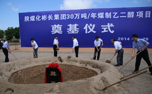 儀式上,彬長礦業(yè)公司總經(jīng)理李孝波首先簡要介紹該項目基本情況和發(fā)展遠景。彬長30萬噸/年煤制乙二醇項目,屬陜西省重點項目,由彬長礦業(yè)負責(zé)實施。項目規(guī)劃總占地約60公頃,項目總投資約50億元,投資回收期約9年。該項目的建設(shè),符合國家、陜西省產(chǎn)業(yè)政策,符合陜煤化集團“以煤炭為基礎(chǔ)、以煤化工為主導(dǎo)”的發(fā)展戰(zhàn)略,該項目的順利實施,將對實現(xiàn)企業(yè)和地方產(chǎn)業(yè)結(jié)構(gòu)調(diào)整、優(yōu)化和升級,促進陜西區(qū)域經(jīng)濟發(fā)展起到積極作用。