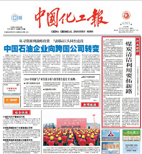 中國化工報(bào):2014年3月19日 第一版