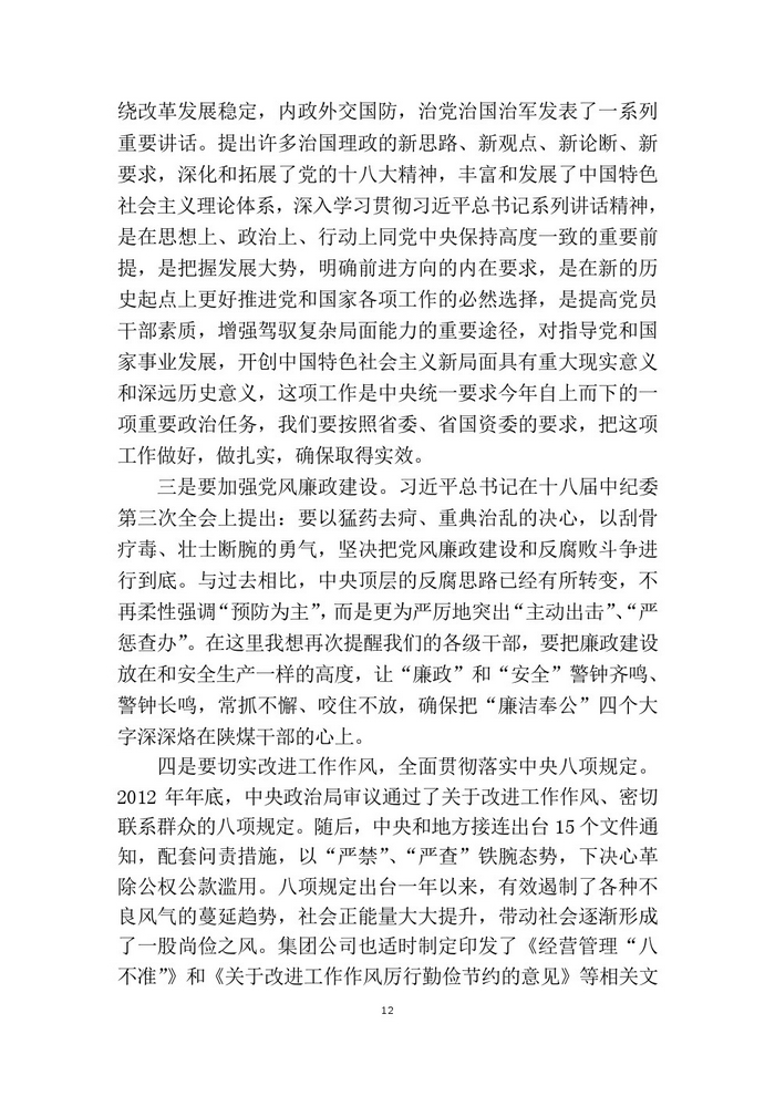 上一條:慰 問 信 下一條:總經(jīng)理楊照乾在集團(tuán)公司2014年工作會暨一屆四次職代會上的報告