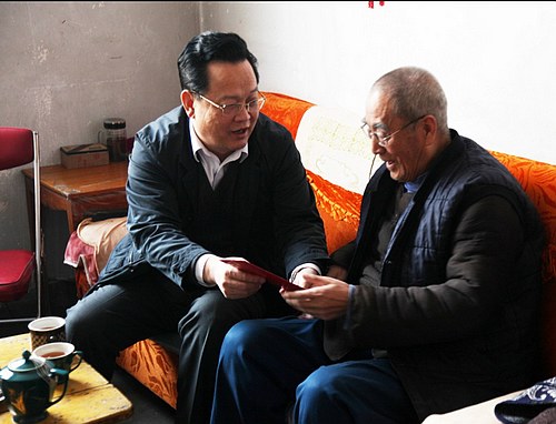 在象山礦井家屬院,馬富元一行看望慰問了因妻子患病造成家庭困難的職工樊雪亮,并送去了大病救助金和米面油,鼓勵(lì)他要堅(jiān)定信心,治好愛人的疾病,為象山礦井做出自己的貢獻(xiàn)。馬富元一行還深入到梅苑一區(qū)慰問了困難黨員李成友,帶去了集團(tuán)公司黨組織的關(guān)懷和溫暖,并帶去節(jié)日禮品及慰問金。隨后,馬富元一行又看望了84歲的離退休老干部王智沛老兩口,送去了慰問金及米面油,帶去了冬日的暖陽,溫暖著老干部的心,并與二老熱情攀談:你們?yōu)轫n城礦區(qū)的發(fā)展做出了巨大貢獻(xiàn),退休以后要繼續(xù)關(guān)注和支持韓城礦業(yè)公司的發(fā)展,要保重身體,安享晚年,過一個(gè)祥和歡樂的春節(jié)。