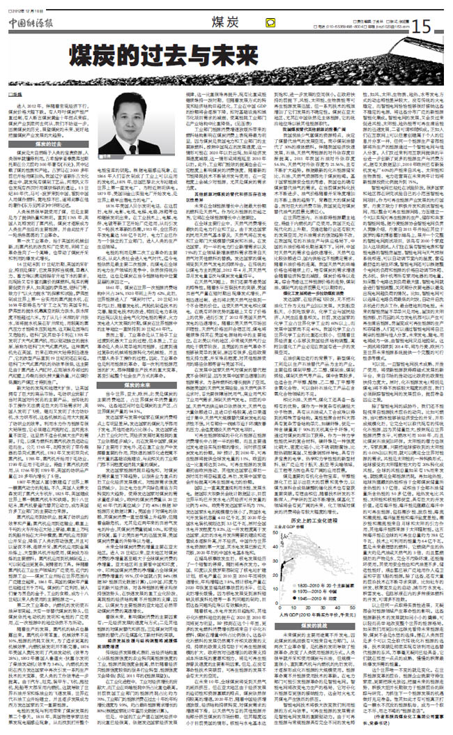 12月10日出版的中國能源報在第15版以一個整版發(fā)表陜西煤業(yè)化工集團公司董事長、黨委書記華煒的署名文章《煤炭的過去和未來》。