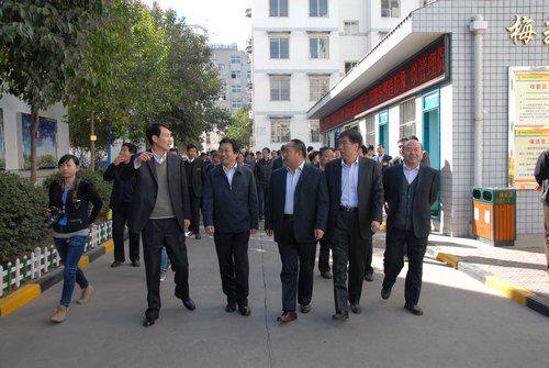 與會人員在韓城實(shí)業(yè)公司梅苑二區(qū)現(xiàn)場參觀