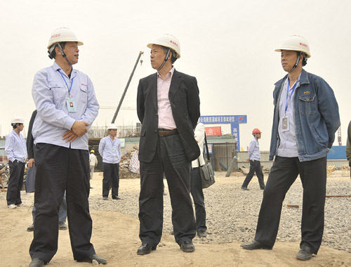 集團公司董事長、黨委書記華煒(中)在項目建設現(xiàn)場了解情況
