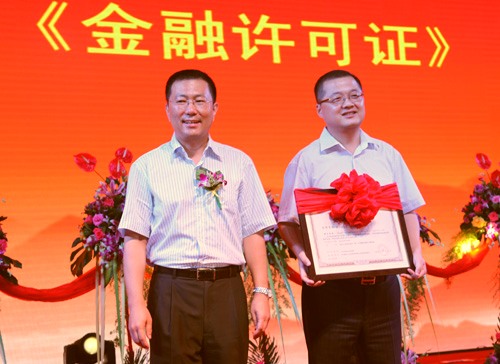 中國銀行業(yè)監(jiān)督管理委員會陜西監(jiān)管局領導向財務公司頒發(fā)《金融許可證》