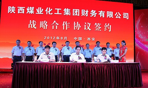 陜煤化集團總會計師趙福堂代表集團公司與農業(yè)銀行、交通銀行共同簽署戰(zhàn)略合作協(xié)議