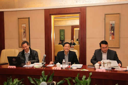 新華社國內(nèi)部主任萬武義、中央經(jīng)濟(jì)采訪室主任趙承、陜西分社副總編輯儲(chǔ)國強(qiáng)在座談中