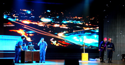 演出在桑樹坪礦普通職工表演的《礦工的愛》中拉開帷幕,鏗鏘有力、充滿激情的表演充分展現(xiàn)了桑樹坪礦職工在災害面前所表現(xiàn)出的對礦山的真摯情感和深沉的愛;鑼鼓說唱《集團贊歌》,敲出了陜煤化人激情昂揚的風采,謳歌了陜煤化集團“十一五”的輝煌成就,展現(xiàn)了集團“十二五”美好的發(fā)展景象;《關懷與激勵》道出了韓城礦業(yè)遇到災難時集團及兄弟單位和用戶雪中送炭的真摯感情,抒發(fā)了“集團是靠山,大愛滿人間”的感恩情懷;情景劇《危急時刻》,由桑樹坪礦一線職工再現(xiàn)了災情面前臨危不亂、及時匯報、迅速撤人、果斷處置、成功避免重大人員傷亡的決策行為、組織能力和安全管理水平。女聲獨唱《請到我們韓城來》、配樂詩朗誦《激情跨越》、舞蹈《礦山歡歌》、地方戲曲聯(lián)唱、詩與歌《沁園春?雪》、器樂合奏《茉莉花》、男聲獨唱《向天再借五百年》等節(jié)目展示了陜煤化人寬廣的胸懷和對遠大理想的追求,使演出不斷推向高潮,歌舞《夢在遠方》,通過桑樹坪礦職工的深情表演,表達了韓城礦業(yè)公司全體干部職工祝福陜煤,滿懷信心,闊步走在金色的大道上的豪情和干勁,使晚會又一次達到高潮。