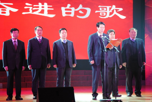 演出開始前,韓城礦業(yè)公司6名公司領導向集團公司領導及各兄弟單位職工代表和觀眾朋友拜年,祝大家龍年大吉、萬事如意!公司黨委書記、董事長王世斌致詞,他說,這是獻給集團公司及兄弟單位的一臺感恩的匯報演出,以答謝集團公司對韓城礦業(yè)公司的大力支持和兄弟單位的熱情幫助。韓城礦業(yè)公司感恩集團公司大家庭的溫暖,感恩省委省政府的關懷,感恩兄弟單位的慷慨解囊。他還展望了韓城礦業(yè)公司2012年的主要工作和未來幾年的發(fā)展前景,并表示要以優(yōu)異的成績回報集團公司的厚愛和大家的關懷。