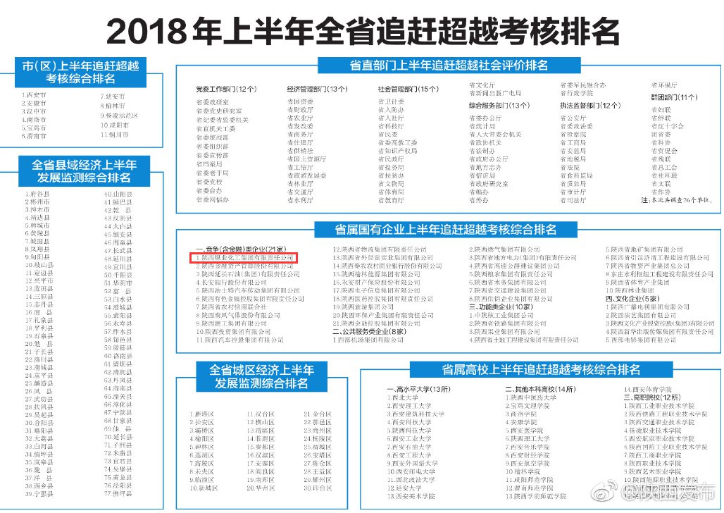 今年上半年,陜煤集團實現(xiàn)銷售收入1302億元,同比增長8%;實現(xiàn)利潤68.42億元,同比增長52%,經(jīng)營業(yè)績創(chuàng)歷史同期最好水平。在最新發(fā)布的2018財富世界500強榜單位列第294位,較上年位次大幅前移43位。這是陜煤集團連續(xù)第四年入圍世界500強,并首次進入前300位。近年來,陜煤集團抓住供給側(cè)改革、“三去一降一補”等宏觀經(jīng)濟政策大變革大調(diào)整的機遇,精確布局、精準發(fā)力,集中力量解決發(fā)展難點、重點,以關(guān)鍵環(huán)節(jié)突破帶動整體工作推進,提升了企業(yè)綜合實力和競爭力。