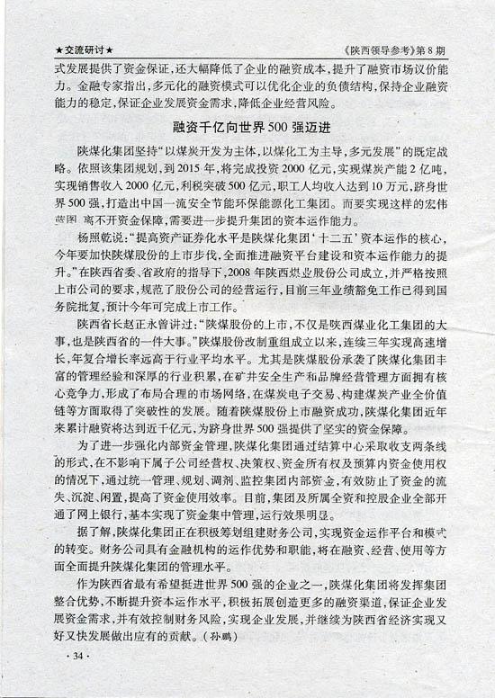 上一條:中國(guó)煤炭工業(yè)協(xié)會(huì)副會(huì)長(zhǎng)趙岸青到陜煤化集團(tuán)調(diào)研 下一條:陜西領(lǐng)導(dǎo)參考:陜煤化集團(tuán)創(chuàng)新融資模式向世界500強(qiáng)邁進(jìn)