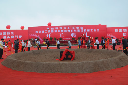 出席開(kāi)工儀式的領(lǐng)導(dǎo)共同為陜西煤業(yè)化工集團(tuán)西安重工裝備制造集團(tuán)煤礦與建設(shè)機(jī)械工業(yè)園培土奠基。