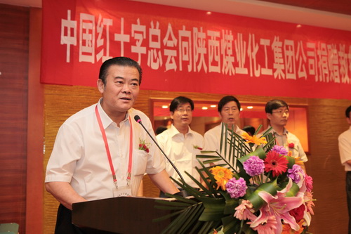 捐贈(zèng)儀式上,中國(guó)紅十字基金會(huì)仁愛(ài)基金志愿者工作辦主任時(shí)進(jìn)龍和陜西煤業(yè)化工實(shí)業(yè)集團(tuán)公司領(lǐng)導(dǎo)進(jìn)行了捐贈(zèng)救護(hù)車(chē)交接儀式。陜煤化集團(tuán)向中國(guó)紅十字基金會(huì)仁愛(ài)基金贈(zèng)送了“仁天下,愛(ài)無(wú)疆”牌匾。