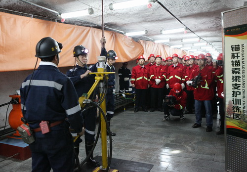 當(dāng)日上午,所有參會人員分為地面、井下兩個小組,地面參觀組,先后到礦區(qū)文化中心、一號煤礦數(shù)字化調(diào)度中心、二號煤礦工業(yè)廣場、地面實訓(xùn)基地等地點參觀。井下組先后參觀了井下文化走廊,井下工作面,五精管理示范崗、示范段等地點,觀摩了機(jī)車司機(jī)的專業(yè)技能訓(xùn)練和變電工的手指口述演示。對黃陵礦業(yè)公司的企業(yè)文化建設(shè)工作進(jìn)行了全面深入的了解。