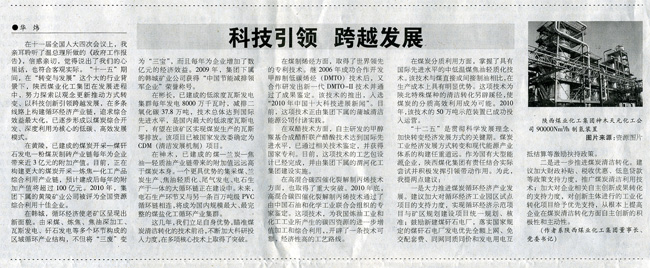 在煤制烯烴方面,取得了世界領(lǐng)先的專(zhuān)利技術(shù)。繼2006年成功合作開(kāi)發(fā)甲醇制低碳烯烴(DMTO)技術(shù)后,又合作研發(fā)出新一代DMTO-II技術(shù)并通過(guò)了成果鑒定。該技術(shù)的推出,入選“2010年中國(guó)十大科技進(jìn)展新聞”。目前,這項(xiàng)技術(shù)正由集團(tuán)下屬的蒲城清潔能源公司付諸實(shí)踐。