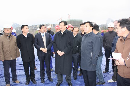 3月23日,陜西省委常委、副省長江澤林來到安康調(diào)研城市建設(shè)等方面工作。調(diào)研期間,他特意來到由陜西煤業(yè)化工集團(tuán)公司承建的安康濱江大道三期市政項(xiàng)目施工現(xiàn)場進(jìn)行視察。安康市委書記、市人大常委會主任劉建明,安康市委副書記、市長方瑋峰,副市長陳明,安康住房與城鄉(xiāng)建設(shè)局、城鄉(xiāng)規(guī)劃局等有關(guān)部門領(lǐng)導(dǎo)陪同視察。