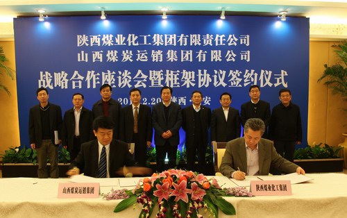 2月20日,陜西煤業(yè)化工集團(tuán)公司和山西煤炭運(yùn)銷集團(tuán)簽署戰(zhàn)略合作框架協(xié)議,通過結(jié)成戰(zhàn)略合作伙伴,加強(qiáng)合作,深化優(yōu)勢(shì)互補(bǔ),促進(jìn)雙方在煤炭物流、煤化工等領(lǐng)域的共同發(fā)展。