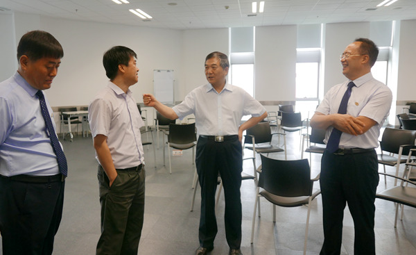 在中大院教務(wù)部和培訓(xùn)部負責人王大剛陪同下,楊照乾一行實地調(diào)研了中大院校園建設(shè)、教室設(shè)施、圖書館、院文化展示墻等。