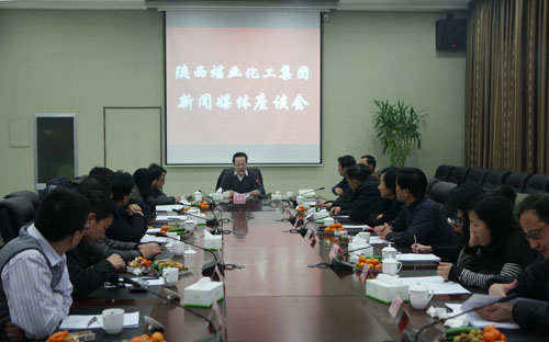 1月25日下午,陜西煤業(yè)化工集團(tuán)公司在機(jī)關(guān)會(huì)議室召開(kāi)2011年新聞媒體座談會(huì)。集團(tuán)公司黨委副書(shū)記馬富元出席會(huì)議并講話,集團(tuán)公司新聞發(fā)言人、黨群工作部部長(zhǎng)夏迎廣介紹集團(tuán)公司“十一五”發(fā)展成就。20位來(lái)自中央、陜西省及西安市的新聞媒體代表應(yīng)邀參加座談會(huì)。會(huì)議由黨群工作部副部長(zhǎng)孫鵬主持。