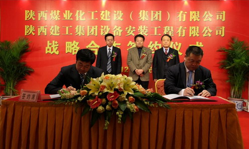 建設(shè)集團(tuán)公司董事長、黨委書記魏效農(nóng)在致辭中講到,建設(shè)集團(tuán)重組成立兩年來,在陜煤化集團(tuán)的正確領(lǐng)導(dǎo)和大力支持下,始終按照“在做好中做大,在做優(yōu)中做強(qiáng)”的發(fā)展思路,把陜煤內(nèi)部市場作為起飛的跑道,把開拓外部市場作為做大做強(qiáng)的制高點(diǎn),內(nèi)抓管理強(qiáng)素質(zhì),外拓市場樹形象,積極從依靠陜煤項(xiàng)目保生存向依托陜煤品牌促發(fā)展轉(zhuǎn)變,從施工總承包向工程總承包轉(zhuǎn)變,從低端市場向高端市場提升,經(jīng)濟(jì)規(guī)模逐年擴(kuò)大,發(fā)展質(zhì)量不斷提高,“煤化建設(shè)”品牌顯現(xiàn)出勃勃生機(jī),2009年實(shí)現(xiàn)營業(yè)收入34億元,今年預(yù)計可實(shí)現(xiàn)營業(yè)收入40億元以上。建設(shè)集團(tuán)與陜西建工集團(tuán)設(shè)備安裝公司同屬建筑施工企業(yè),經(jīng)營業(yè)務(wù)有著很多的相似性和互補(bǔ)性,本著“優(yōu)勢互補(bǔ),合作共贏”的理念,雙方經(jīng)過多次醞釀和磋商,達(dá)成了“合作成就共贏,共贏引領(lǐng)共同發(fā)展”的共識,成就了雙方的戰(zhàn)略合作。