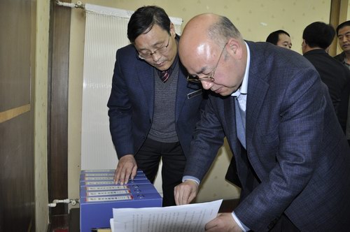 省國資委副主任王浩生翻閱澄合礦業(yè)公司創(chuàng)先爭優(yōu)活動資料