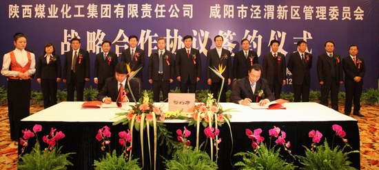 12月28日,陜西煤業(yè)化工集團(tuán)公司與咸陽(yáng)市涇渭新區(qū)管委會(huì)在咸陽(yáng)國(guó)貿(mào)大酒店隆重舉行戰(zhàn)略合作簽約儀式。咸陽(yáng)市委書記千軍昌、市長(zhǎng)莊長(zhǎng)興,陜煤化集團(tuán)黨委書記、董事長(zhǎng)華煒,總經(jīng)理高仰才,副總經(jīng)理尤西蒂、尚建選,董事吳繼亮,建設(shè)集團(tuán)領(lǐng)導(dǎo)魏效農(nóng)、楊永紅、李冰一,涇渭新區(qū)管委會(huì)主任楊占文等出席了簽約儀式。簽約儀式由咸陽(yáng)市常務(wù)副市長(zhǎng)趙潤(rùn)民主持。