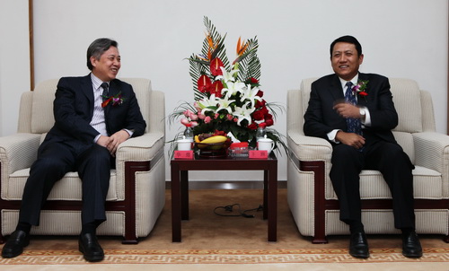 陜煤化集團董事長、黨委書記華煒與中國大唐集團公司副總經(jīng)理王琳交談