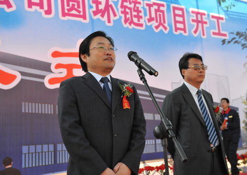 奠基開工儀式上,西安重裝集團(tuán)董事長、黨委書記王增強(qiáng)講話,他代表重裝集團(tuán)對蒞臨開工儀式的各位領(lǐng)導(dǎo)、各位嘉賓和同志們表示熱烈的歡迎,對長期支持、幫助和關(guān)心重裝集團(tuán)發(fā)展的陜煤化集團(tuán)、澄合礦業(yè)公司、各兄弟單位表示衷心的感謝,對前期做了大量基礎(chǔ)調(diào)研、可研論證、項(xiàng)目準(zhǔn)備工作的有關(guān)部門和專家,對投入這次工程建設(shè)的設(shè)計(jì)單位、施工單位、監(jiān)理單位和項(xiàng)目管理的同志們表示親切的慰問。他指出,圓環(huán)鏈項(xiàng)目是重裝集團(tuán)又一個(gè)重點(diǎn)投資項(xiàng)目,暨關(guān)系到澄合煤機(jī)公司的未來發(fā)展,也是重裝集團(tuán)產(chǎn)業(yè)鏈的重要環(huán)節(jié)和經(jīng)濟(jì)增長點(diǎn),意義重大。他要求澄合煤機(jī)公司在項(xiàng)目建設(shè)中以重裝集團(tuán)所奉行的“用戶滿意、員工幸?!钡幕纠砟?,高標(biāo)準(zhǔn)、嚴(yán)要求、精心組織、科學(xué)施工、做出精品,為澄合煤機(jī)公司、重裝集團(tuán)的發(fā)展做貢獻(xiàn)。