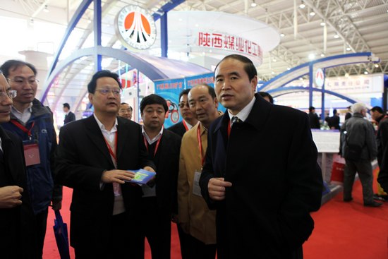中國能源局副局長吳吟(右一)參觀陜西煤業(yè)化工集團展區(qū)