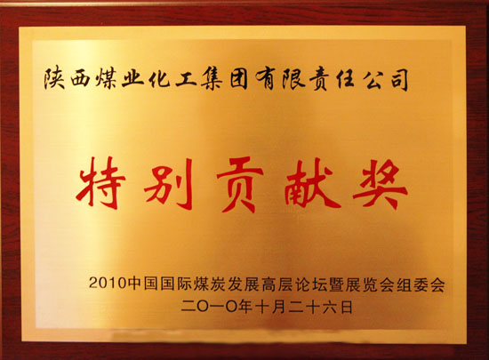 陜西煤業(yè)化工集團榮獲2010中國國際煤炭發(fā)展高層論壇暨展覽會特別貢獻獎