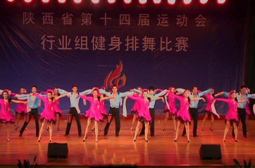 韓城礦務(wù)局代表隊(duì)在健身排舞比賽中