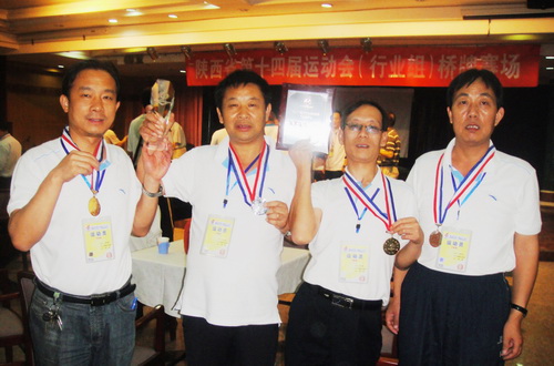 陜煤化集團(tuán)代表團(tuán)獲獎(jiǎng)項(xiàng)目。獲得金牌的項(xiàng)目是:中國(guó)象棋團(tuán)體冠軍(蒲白局中國(guó)象棋隊(duì));橋牌單項(xiàng)冠軍(澄合礦務(wù)局橋牌隊(duì));女子800米(銅川礦務(wù)局田徑隊(duì));女子4X400米(銅川礦務(wù)局田徑隊(duì))。獲得銀牌的項(xiàng)目是:門(mén)球亞軍(銅川礦務(wù)局門(mén)球隊(duì));橋牌單項(xiàng)亞軍(澄合礦務(wù)局橋牌隊(duì))。獲得銅牌的項(xiàng)目是:田徑女子團(tuán)體第三(銅川礦務(wù)局田徑隊(duì));乒乓球男雙第三(渭化、銅川局聯(lián)合組隊(duì));男子4*400米接力(銅川礦務(wù)局田徑隊(duì));女子800米 (銅川礦務(wù)局田徑隊(duì))。獲得二等獎(jiǎng)的項(xiàng)目是:健身秧歌規(guī)定套路(韓城礦務(wù)局代表隊(duì));健身排舞自選套路(韓城礦務(wù)局代表隊(duì))。獲得三等獎(jiǎng)的項(xiàng)目是:健身秧歌自選套路(韓城礦務(wù)局代表隊(duì));健身排舞規(guī)定套路(韓城礦務(wù)局代表隊(duì));太極拳團(tuán)體(銅川礦務(wù)局代表隊(duì))。獲得第四名的項(xiàng)目是:男、女100米(銅川礦務(wù)局代表隊(duì))。獲得第五名的項(xiàng)目是:橋牌團(tuán)體(澄合礦務(wù)局代表隊(duì))。獲得第六名的項(xiàng)目是:男子乒乓球(渭化集團(tuán)、銅川礦務(wù)局、蒲城清潔能源公司聯(lián)合組隊(duì))。同時(shí),澄合礦務(wù)局的原本佑還被評(píng)為2006--2010年度陜西省群眾體育先進(jìn)個(gè)人。