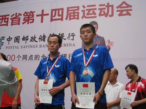 渭化公司、銅川礦務(wù)局乒乓球男雙上臺(tái)領(lǐng)獎(jiǎng)