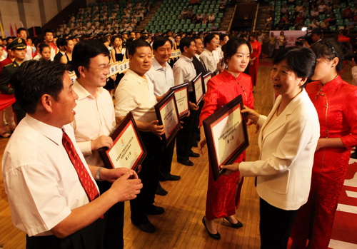 省委副書(shū)記王俠為獲獎(jiǎng)代表團(tuán)頒獎(jiǎng)(左二集團(tuán)公司代表)