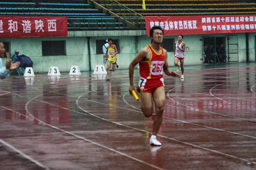 銅川礦務(wù)局職工在4X400米接力比賽中