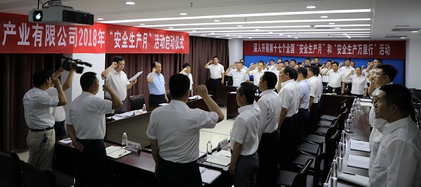 該公司總經(jīng)理助理謝博濤帶領(lǐng)主會場及所有分會場人員作安全宣誓,并觀看了“安全生產(chǎn)月”專題宣傳片。
