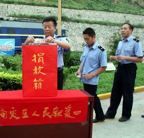 面對無情的水災、泥石流,雖然遠在千里,但災區(qū)人民的遭遇牽動著廣大職工和居民群眾的心。在社區(qū)黨政的號召下,在馬村社區(qū)二樓會議里,干部職工慷慨解囊,積極開展募捐活動,干部職工你50,我100,短短幾個小時,就收到捐款8850 元,希望災區(qū)人民早日重建美好家園。(徐文鎖)