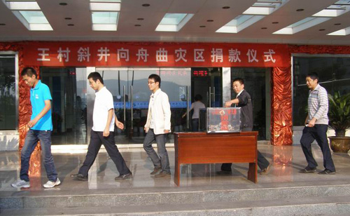 8月27日上午,王村斜井為災區(qū)同胞舉辦大型募捐活動,500多名干部職工參加了捐款儀式。20元、50元、100元、200元……捐款活動中所有干部職工紛紛慷慨解囊,將一份份愛心款投入到捐款箱內,充分發(fā)揚了“一方有難、八方支援”的優(yōu)良傳統(tǒng)?;顒佣潭?個小時就募集愛心款11025 元。