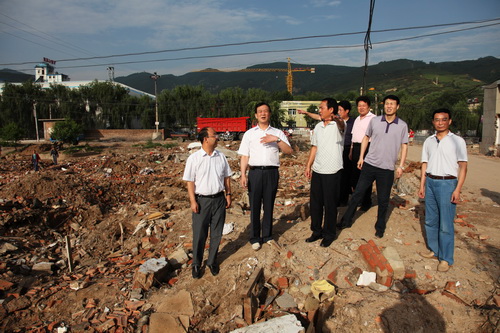 8月16日下午,陜煤化集團(tuán)公司總經(jīng)理高仰才專程趕赴銅川礦務(wù)局遭受特大洪災(zāi)最嚴(yán)重的陳家山礦寨子溝、龍石溝等居民區(qū)受災(zāi)現(xiàn)場(chǎng)察看災(zāi)情。集團(tuán)公司副總經(jīng)理朱周岐、生產(chǎn)技術(shù)部經(jīng)理王世斌,局黨委書記杜樹山、副局長黃河、郭寶輝等一同前往察看受災(zāi)情況。
