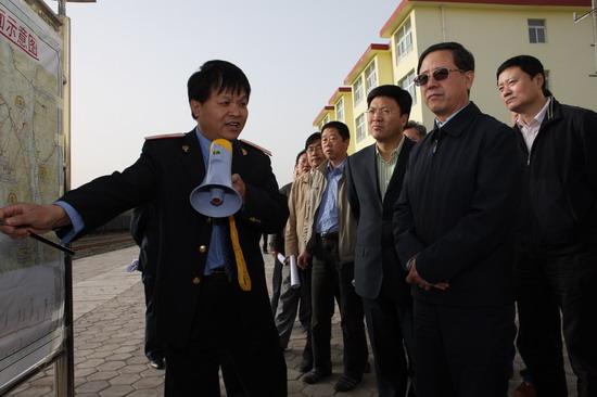 吳登昌副省長一行首先來到紅檸鐵路紅柳林車站,神南礦業(yè)公司副總經(jīng)理陳天成詳細(xì)介紹了紅檸鐵路的設(shè)計(jì)規(guī)劃和項(xiàng)目建設(shè)進(jìn)展情況,并就紅檸鐵路建成以后的發(fā)展構(gòu)想做了簡要的匯報(bào)。
