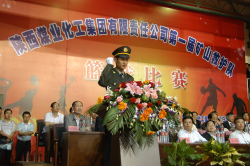 比賽承辦方韓城礦業(yè)公司執(zhí)行董事、總經(jīng)理徐冉忠向來賓致了歡迎詞。他說,在全國認(rèn)真開展第九個(gè)“安全生產(chǎn)月”活動(dòng)的熱潮中舉辦的這次比賽,目的是弘揚(yáng)集團(tuán)公司“生命至上,安全為天”的安全理念和深化“安全發(fā)展 預(yù)防為主”的一項(xiàng)重要內(nèi)容,同時(shí)也是展示集團(tuán)公司救護(hù)隊(duì)員英勇頑強(qiáng)、雷厲風(fēng)行、善打硬仗的精神風(fēng)貌。韓城礦業(yè)公司將以大賽為契機(jī),勵(lì)精圖治、開拓創(chuàng)新為實(shí)現(xiàn)集團(tuán)公司“十一五”規(guī)劃目標(biāo),推進(jìn)集團(tuán)公司科學(xué)發(fā)展、安全發(fā)展努力奮斗。