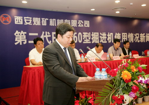 6月11日,西安煤礦機(jī)械有限公司在榆林舉行了第二代EBZ160型掘進(jìn)機(jī)產(chǎn)品使用情況新聞發(fā)布會(huì)。省煤炭工業(yè)局局長王雙明,省煤礦安全監(jiān)察局局長常天明,陜西煤業(yè)化工集團(tuán)副總經(jīng)理朱周岐,西安重工裝備制造集團(tuán)有限公司董事長王增強(qiáng),中能煤田董事長黃彬生及陜北礦業(yè)等40多家大型煤炭企業(yè)的領(lǐng)導(dǎo)和煤礦負(fù)責(zé)人共計(jì)120余人參加了會(huì)議。