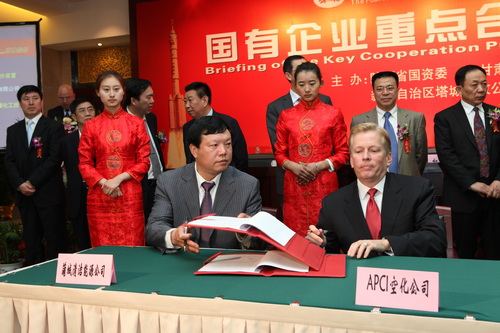 陜煤化集團(tuán)蒲城清潔能源公司代表與美國空氣產(chǎn)品(中國)投資有限責(zé)任公司代表簽約投資意向書。