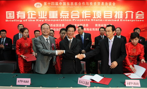 第十四屆中國東西部合作與投資貿(mào)易洽談會,是陜西和西部省市擴(kuò)大對外開放、拓展交流合作、推動國有企業(yè)外向發(fā)展的一項(xiàng)重要舉措。推介會上,陜西煤業(yè)化工集團(tuán)及集團(tuán)下屬單位神木煤化工產(chǎn)業(yè)公司和蒲城清潔能源公司分別與漢中市政府、安康市政府、江蘇煤化工程研究設(shè)計(jì)院、上海勝幫煤化工技術(shù)公司和美國空氣產(chǎn)品(中國)投資有限責(zé)任公司5家企業(yè)代表在煤化工、煉油、物流服務(wù)、基礎(chǔ)設(shè)施、環(huán)保和節(jié)能等領(lǐng)域項(xiàng)目上簽約了合作協(xié)議。