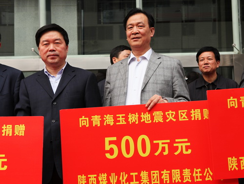 青海玉樹強烈地震發(fā)生后,災(zāi)情深深牽動著陜西煤業(yè)化工集團公司9萬名員工的心,在4月19日下午陜西省國資委舉行的國有企業(yè)向玉樹災(zāi)區(qū)捐款儀式上,集團公司向災(zāi)區(qū)捐款500萬元,為地震災(zāi)區(qū)送去了廣大干部職工的祝福和愛心。