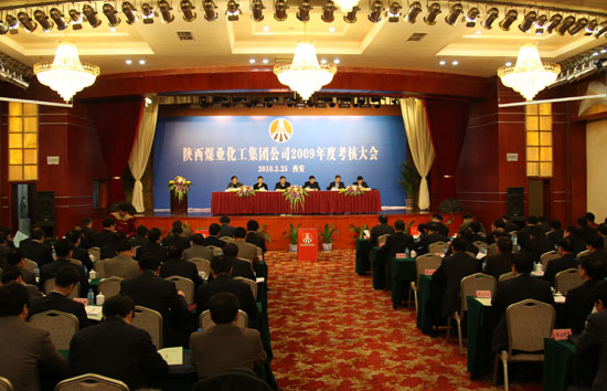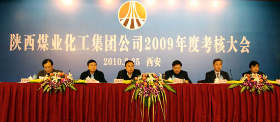 2月25日,省委組織部、省國(guó)資委共同組成考核組,對(duì)陜西煤業(yè)化工集團(tuán)公司2009年工作進(jìn)行目標(biāo)責(zé)任年終綜合考核??己舜髸?huì)上,考核組組長(zhǎng)、省國(guó)資委主任、黨委書記白阿瑩,副組長(zhǎng)、省委組織部副巡視員魏安民、省國(guó)資委副主任劉陽(yáng),陜西煤業(yè)化工集團(tuán)公司董事長(zhǎng)、黨委書記華煒,總經(jīng)理高仰才和考核組成員、省國(guó)有企業(yè)監(jiān)事會(huì)主席趙秦川在主席臺(tái)就座??己私M成員、集團(tuán)公司領(lǐng)導(dǎo)、集團(tuán)公司所屬單位的主要領(lǐng)導(dǎo)和機(jī)關(guān)部門的負(fù)責(zé)同志以及職工代表130余人參加了會(huì)議。