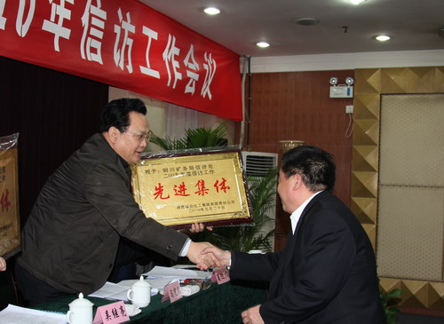 集團公司工會副主席李向東在會上傳達(dá)了陜西省聯(lián)席會議精神。銅川礦務(wù)局、蒲白礦務(wù)局、澄合礦務(wù)局、韓城礦務(wù)局、陜西煤炭建設(shè)公司在會上作了表態(tài)發(fā)言。集團公司綜合部副部長郭旭東通報了2009年信訪穩(wěn)定工作考核結(jié)果。銅川礦務(wù)局、蒲白礦務(wù)局被評為集團公司2009年信訪工作先進(jìn)集體,在會上受到了表彰。