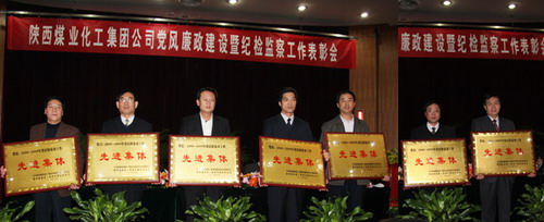 1月29日,陜西煤業(yè)化工集團(tuán)公司召開黨風(fēng)廉政建設(shè)暨紀(jì)檢監(jiān)察表彰會(huì),學(xué)習(xí)貫徹黨的十七屆四中全會(huì)和中央紀(jì)委五次全會(huì)以及省委、省紀(jì)委、省國(guó)資委黨委關(guān)于加強(qiáng)黨風(fēng)建設(shè)和反腐倡廉工作的要求,總結(jié)了2009年黨風(fēng)廉政建設(shè)和反腐敗工作,表彰了2008-2009年度紀(jì)檢監(jiān)察工作先進(jìn)集體和先進(jìn)個(gè)人,安排部署了今年的工作任務(wù)。